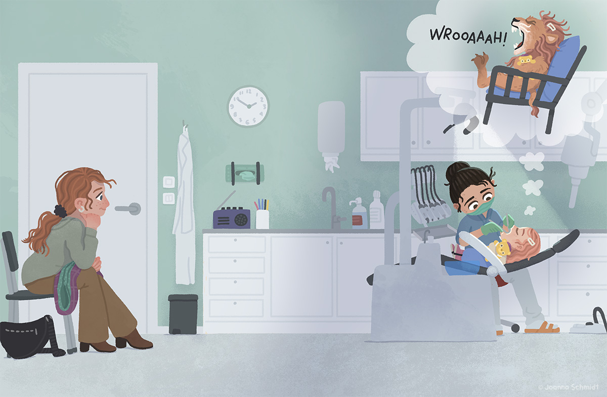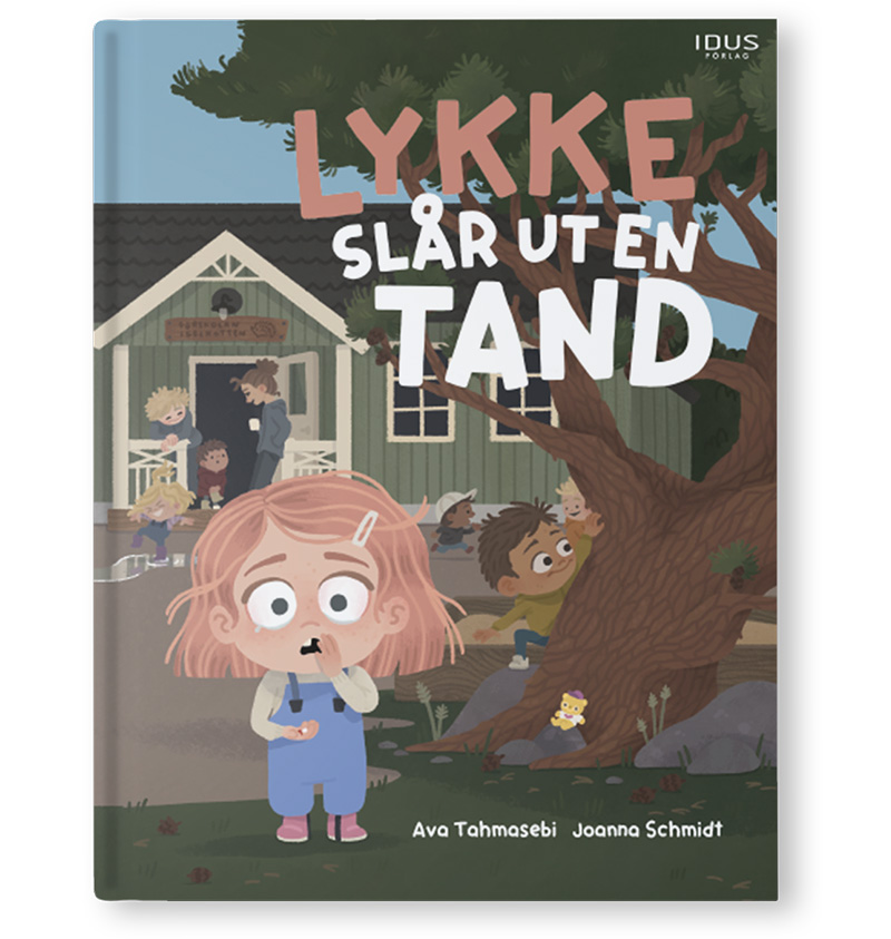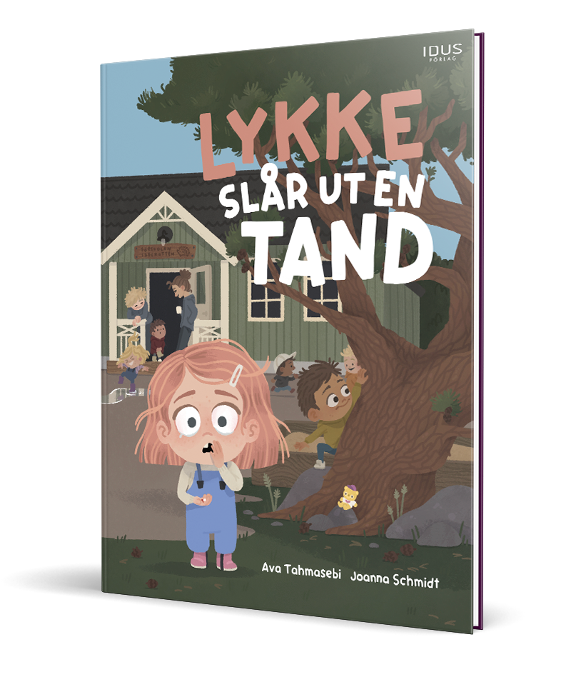 Det här är en bok som jag har illustrerat. Den handar om Lykke som är med om en olycka på förskolan och tappar en tand. En bok med mycket känslor att illustrera.